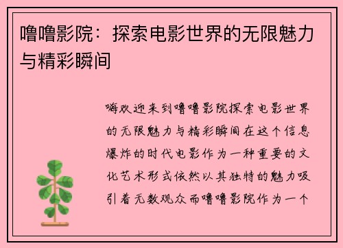 杨贵妃传媒映画app下载是一部深入探讨现代人内心世界的作品,旨在为读者提供一个逃离喧嚣、寻找内心宁静的空间。在这个快节奏的社会中,人们常常被外界的噪音和压力所困扰,而这本书正是希望通过细腻的文字和深刻的思考,引导读者重新审视自己的内心,找到那片属于自己的宁静之地。书中通过生动的故事和真实的情感,传达了对生活的反思和对自我价值的追求。